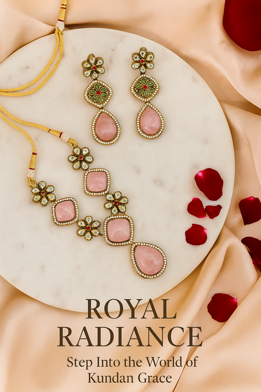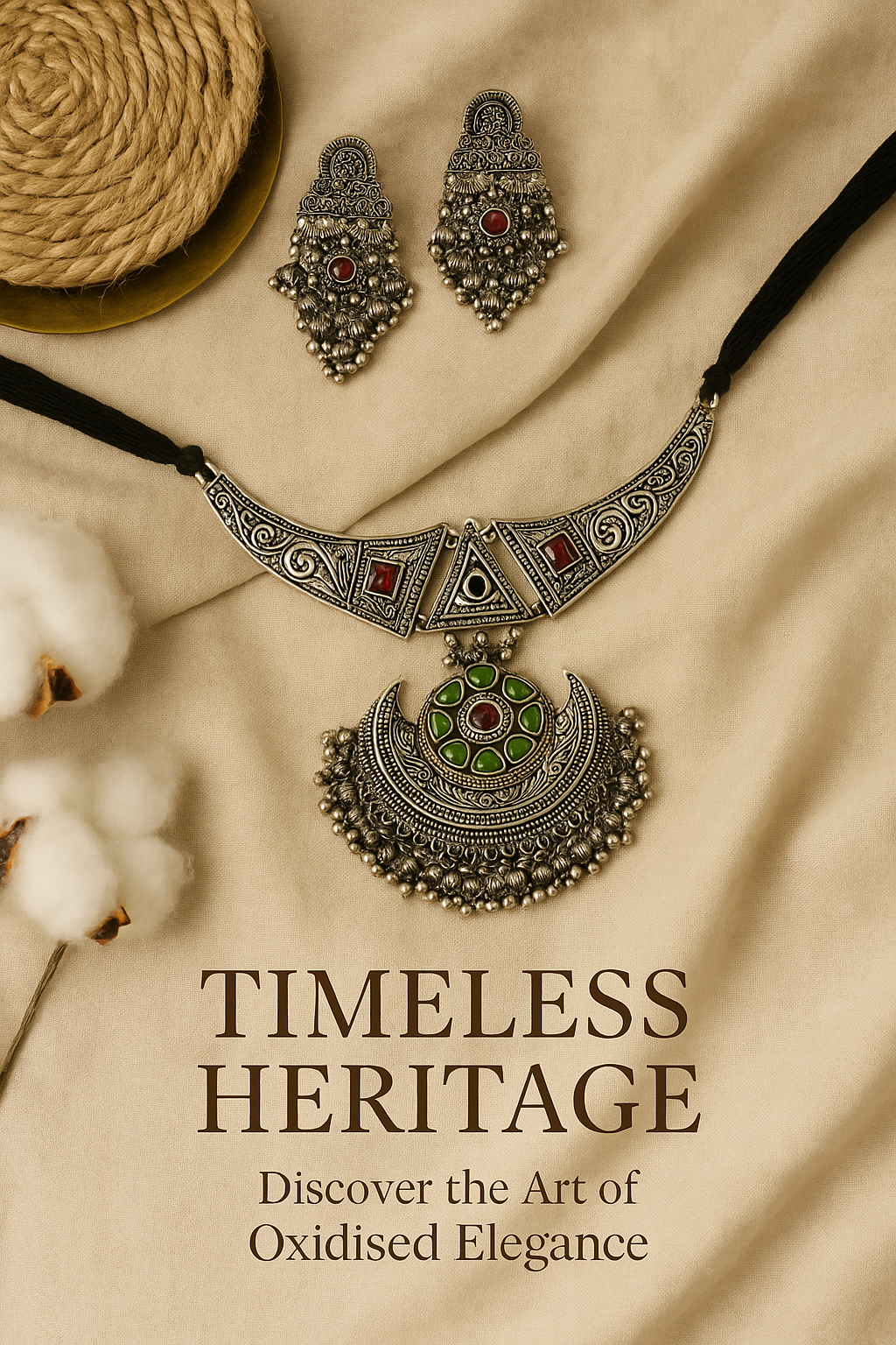 Traditional Oxidised Silver Necklace & Earring Set with Kundan Detailing